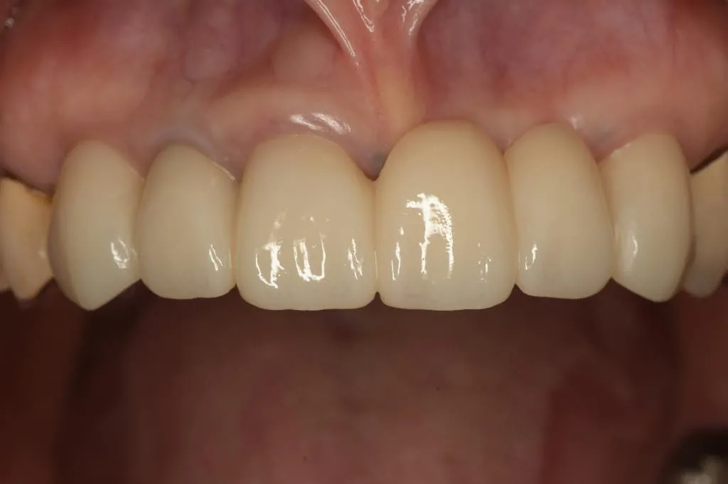 ジルコニアだけを使った「フルジルコニア」は、白さや透明感の上ではセラミックに劣りますが、上からセラミックを焼き付けることで自然な色調となり、天然歯により近い色を実現します。