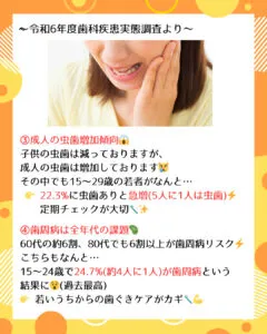 ✅ 成人・若者世代のむし歯や歯周病は増加傾向😢